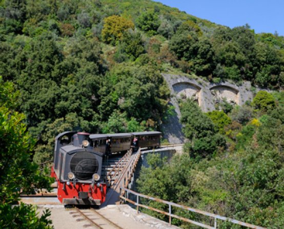 Het spoor in Pilion is een belangrijk element geweest voor de ontwikkeling van het gebied. Over een traject van zestien kilometer boemelt het treintje omhoog door olijfboombossen, over berghellingen en prachtige oude bruggen.