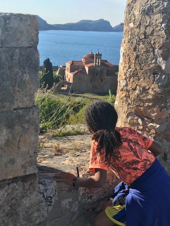 Samen met hun kinderen trok familie Van der Vliet er tijdens hun vakantie in Gialova vaak op uit en bezocht onder andere de burcht Niokastro.