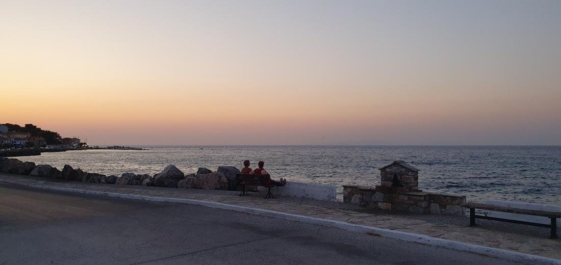 De zonsondergang in Agios Konstantinos was voor mijnheer Groothand een prachtige afsluiting van alweer een mooie dag op Samos.