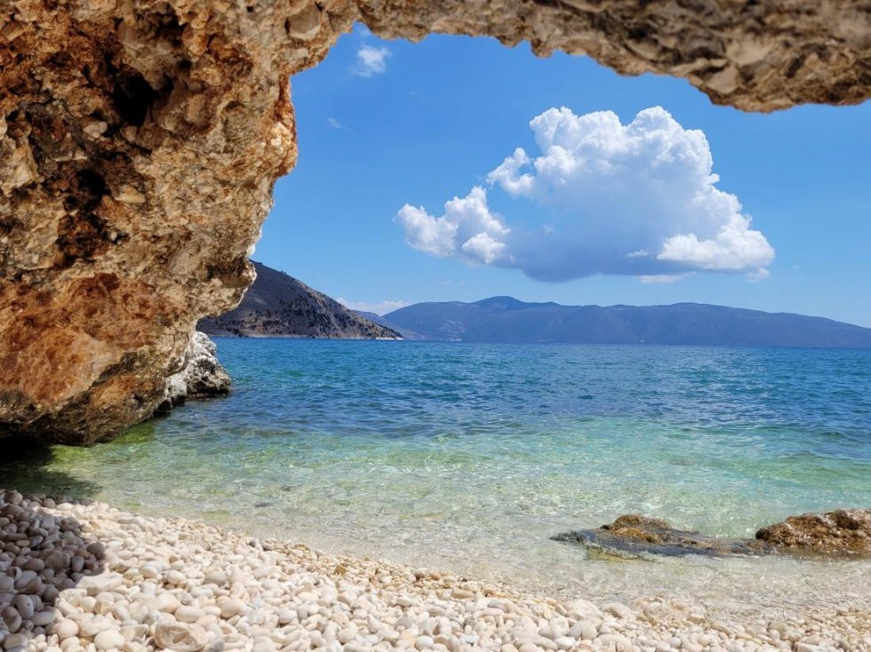 Dit strandje bij Agia Effimia werd door mijnheer Van den Dool gefotografeerd tijdens zijn vakantie op Kefalonia.