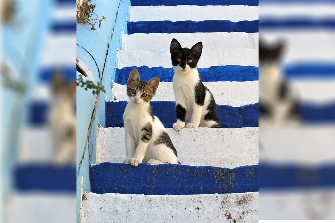 Mijnheer Hoving kwam op Kefalonia deze poezen tegen en in combinatie met de Griekse kleuren leek een foto hem echt toepasselijk voor de Griekse eilanden.
