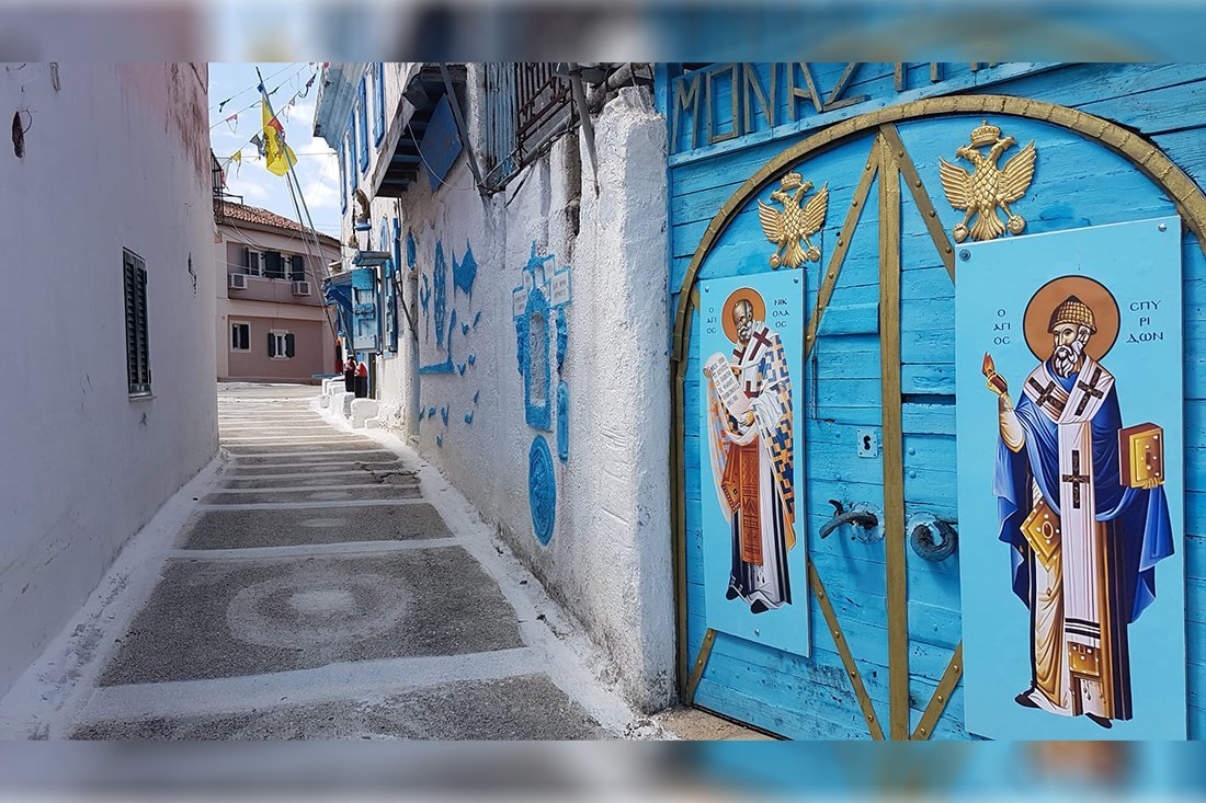 Op weg naar het Korissonmeer werd mevrouw Louwe tijdens haar vakantie op Corfu verrast door de kunst in deze straat.