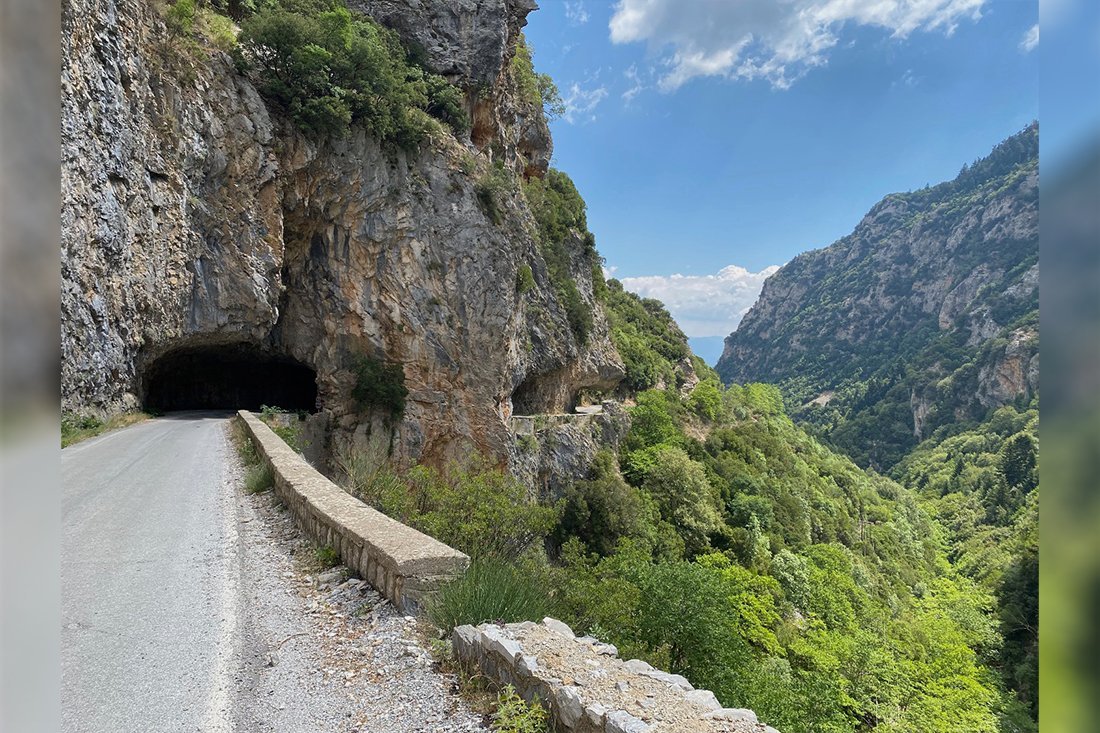 Mevrouw van der Linde maakte tijdens haar vakantie op de Peloponnesos een prachtige autorit door het Taigetos-gebergte en fotografeerde daar deze bijzondere tunnel.