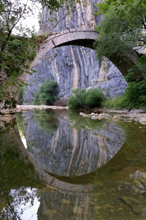 Zo zie je de boogbrug ineens twee keer in het Zagoria gebied! De lichtinval zorgde namelijk voor een reflectie in het water onder de brug. Mevrouw Bosch, gefeliciteerd met de tweede prijs!