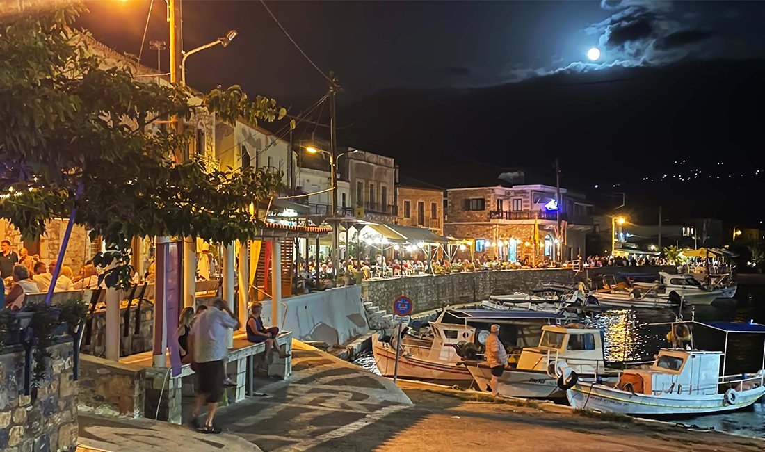 Familie Kleine Haar maakte in Agios Nikolaos met volle maan een muziekfestival mee tijdens hun vakantie op de Peloponnesos.