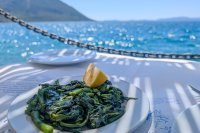 Rond de haven heerst een gezellige bedrijvigheid. Vrolijk gekleurde vissersboten varen hier af en aan om de tavernes van verse vis te voorzien en ook plezierboten leggen hier graag aan of gooien voor de kust hun anker uit. Vanuit deze haven vertrekt eveneens meerdere malen per dag een echte Griekse ‘kaïki’, traditionele vissersboot, voor een trip naar de nabijgelegen eilanden Kalamos en Kastos.
