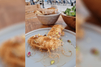 De gerechten zijn veelal seizoensgebonden en overal proeft u de aroma’s van het Akarnanika gebergte en de zilte smaak van de Ionische Zee en de Ambracische Golf weer terug. Of het nu gaat om tiropita met huisgemaakt bladerdeeg en lokale feta, gevulde wijnbladeren, een visplateau met de vangst van de dag of langzaam gegaard lamsvlees met aromatische kruiden, een ding is zeker: in de gezellige ambiance van Yacht Club Paleros kunt u heerlijk en eerlijk eten!