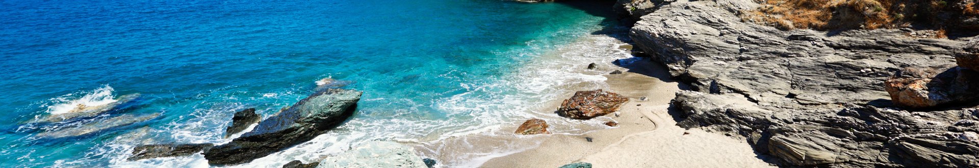 De stranden variëren van ware toeristentrekpleisters tot verlaten stranden. Op uw weg over het eiland kunt u dus zomaar een klein, eenzaam strand treffen waar u in alle rust kunt genieten van de mooie omgeving. De zee om het eiland kleurt prachtig azuurblauw en is heerlijk om een verfrissende duik te nemen of te snorkelen. De in het noorden en oosten gelegen stranden krijgen in de zomer regelmatig te maken met een meltemia, ofwel zomerwind. We nemen u mee langs de kust van Andros, beginnend bij Batsi reizen we via de westkust naar het noorden om vervolgens via de oostkust in het zuiden aan te komen en vandaar weer terug naar Batsi.
