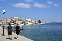 In de 5e eeuw v.Chr. was dit een florerende stad. Niet alleen de scheepvaart heeft de bewoners een rijkdom gebracht, maar ook de vondst van een paars gekleurde schelp. Hieruit werd een rode kleurstof gemaakt die gebruikt werd voor het kleuren van Koninklijke gewaden. In het dorp zijn twee kerken die u niet over mag slaan; de uit de 13e eeuw daterende Taxiárches-kerk en de Panagía-kerk uit begin 20e eeuw. In de buurt van de oude kerk is het Historisch en Folklore museum gevestigd, waar men een goed beeld krijgt van het leven van lokale bevolking van ooit. Erminóni eindigt in een schiereiland met de naam Bisti. Dit bevat behalve een grote hoeveelheid pijnbomen, enkele restanten van een oude nederzetting. Zo zijn er de fundamenten te zien van een tempel ter ere van Poseidon. En natuurlijk ook hier prachtige stranden met kristalhelder water. Een uitstekende plek om te wandelen. Achter het dorp prijkt bovenop de heuvel het klooster van Agíi Anargýri.