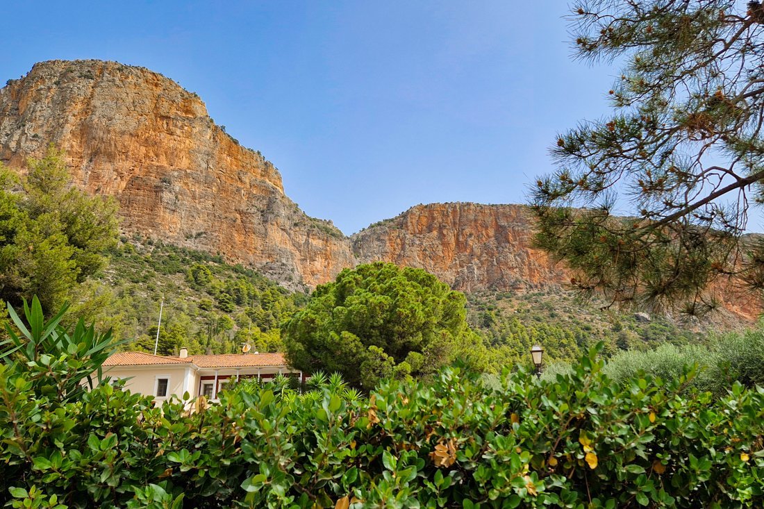 Volgt u de weg door de kloof, dan komt u vanzelf bij het Elonas-klooster. Hoog tegen de bergwand gebouwd en met een spectaculair uitzicht. De monniken wisten de plekken wel te vinden in vergane tijden. Het klooster is goed bewaard gebleven en heeft een kapel met mooie schilderingen.
