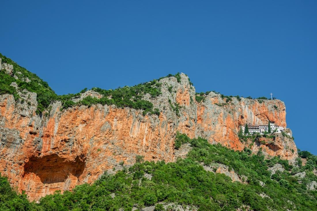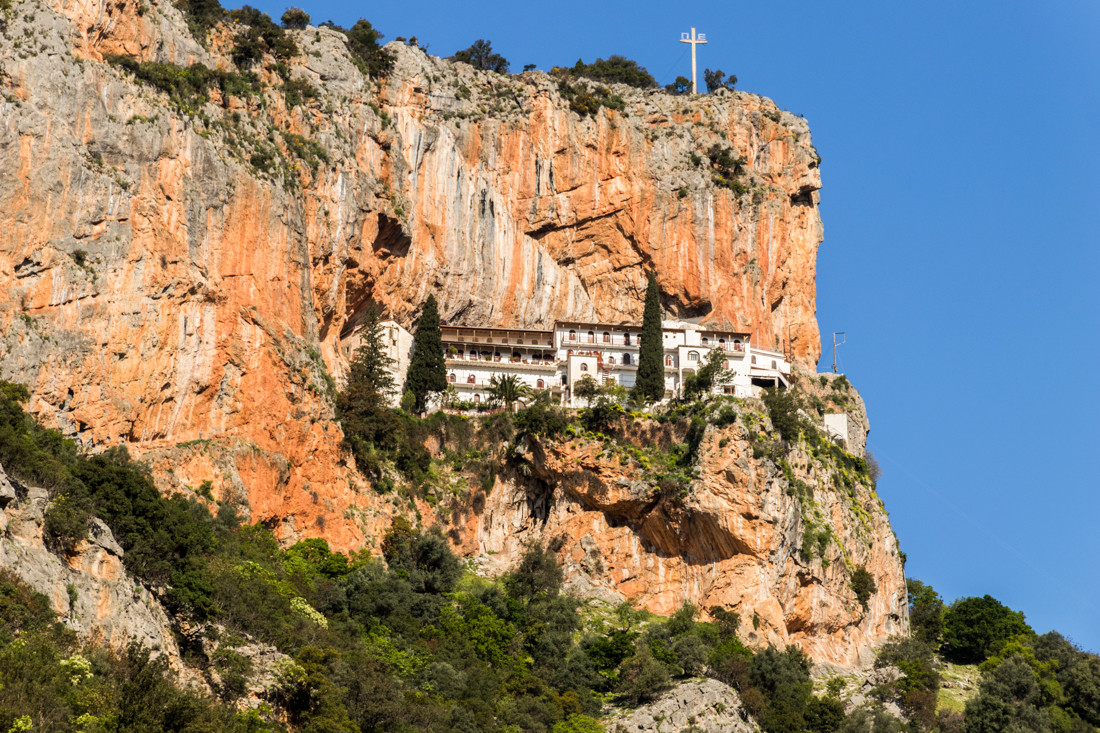 Elona-kloosterOp de weg van Leonidio naar Kosmas ligt het klooster van Elonas dat door de spectaculaire ligging lijkt te zweven in de lucht.
