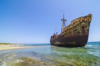 Ten noorden van Gythio langs de kust ligt Valtaki Beach, een lang zandstrand dat niet te missen valt: er ligt een groot verroest scheepswrak op. De Dimitrios strandde in december 1981 op dit strand. Er doen veel geruchten de ronde over de herkomst van het schip en hoe het op het strand terecht is gekomen. Sommige noemden onderschepte sigarettensmokkel tussen Turkije en Italië en een andere versie verhaalt over een noodaanleg in Gythio. Het verlaten schip zou daarna door een storm zijn meegesleurd en terecht zijn gekomen op het strand van Valtaki. Het schip werd daar gewoon achtergelaten en er werden geen pogingen ondernomen om het te bergen.