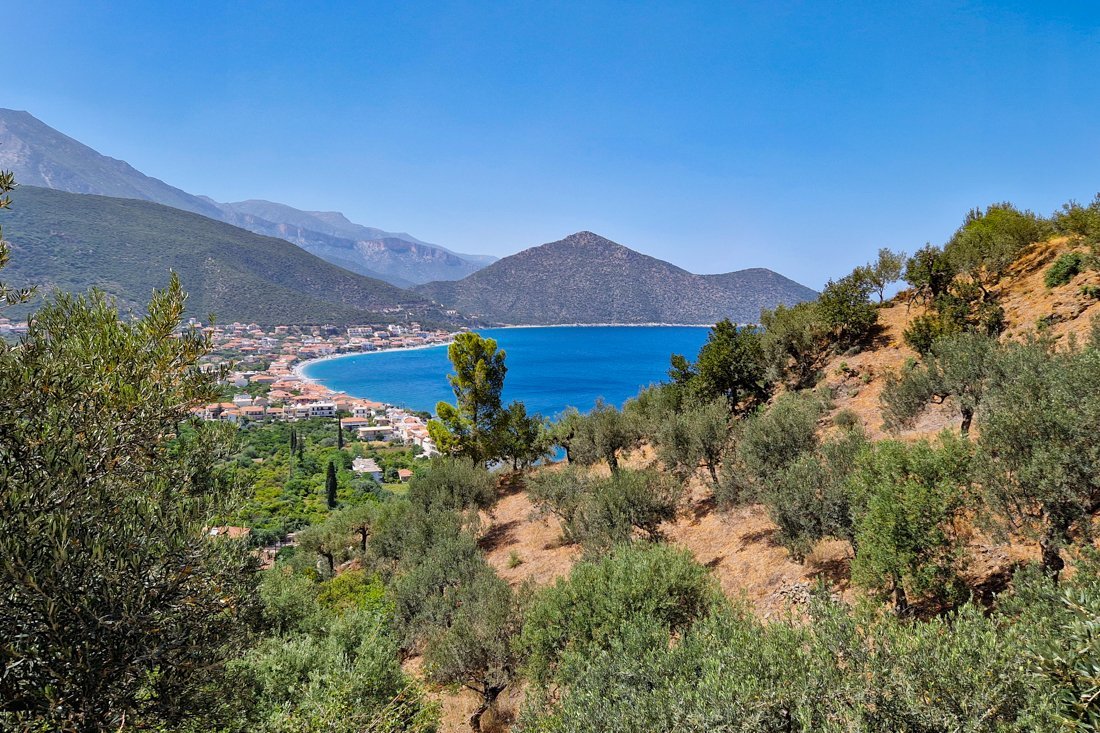 Aan de kust van de Myrtoïsche Zee, vlak bij Leonidio, komen de dorpen Tyros en Sapounakeika samen bij een 2 kilometer lang, vlak kiezelstrand. Vanuit de haven omhoogkijkend ziet u de bergdorpen duidelijk liggen, met Sapounakeika aan de linkerkant en Tyros in het midden en hoger aan de rechterkant.