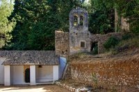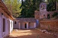 Wie even verderop het pad door het bos neemt, komt uit bij in de rotsen uitgehakte kluizenaarsgrotten. Hier zou de uit Epiros afkomstige monnik Artemios Paisios in de 5e eeuw n.Chr. een grot hebben uitgehakt waar hij, op zoek naar rust, tot zijn dood bleef wonen.