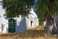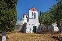 Net voor u het dorp binnenrijdt, ziet u de unieke Estavromenos kerk. Deze kerk heeft een opvallende architectuur en wijkt qua uiterlijk nogal af van de meeste Griekse kerken. De kerk werd in 1721 gebouwd door een Griekse monnik nadat hij lange tijd in gevangenschap van Algerijnse piraten had doorgebracht. Tegenwoordig behoort de kerk tot privébezit.