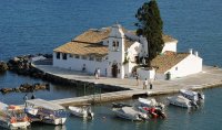 Als u naar beneden wandelt, kunt u via een smalle doorgang het kleine kerkje Panagia Vlacherna bereiken. Het pittoreske kerkje is gebouwd in de 17e eeuw en verhult prachtige frescos in een oase van rust. Het dak is bedekt met rode dakpannen en bij de ingang treft u een hoge klokkentoren aan. Vissersbootjes vertrekken regelmatig van het kerkje naar het legendarische ‘Mouse Island’. Dit bijzonder groene eilandje dankt haar naam aan haar kleine omtrek. Volgens de mythologie is dit rotsachtige groene eiland het schip van Ulysses, versteend door toedoen van de God Posseidon. Bovenop het eilandje staat het 13e-eeuwse kerkje van Pantokrator. Een verhard wandelpad door het water verbindt Kanoni met de aan de andere kant gelegen wijk Perama.