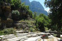 Een zijrivier van de Rogovós heeft een kleine kloof gecreëerd met natuurlijke poelen van ijskoud water, de Papingo Rock Pools. Als u het pad volgt, ziet u na een paar minuten de eerste bassins. Het zijn eigenlijk holtes in kalkstenen rotsen die zijn ontstaan door de beweging van het water van de beek Rogovós. Als de dammen gesloten zijn, ontstaan er poelen met stromend, kristalhelder water, geschikt om in te zwemmen tijdens de zomermaanden. Maar als de dammen geopend zijn en het water natuurlijk stroomt, is de erosie van het water op de rotsen waar te nemen. Tijdens de zomermaanden kunt u in het water van een bassin zwemmen. Volgens het verhaal zwom zelfs Ali Pasja van Ioannina in de zomer in de bassins. Het water is altijd vrij koud. Maar zelfs als u geen duik waagt, kunt u genieten van de rust van de natuur met dichte vegetatie en prachtige kleuren.