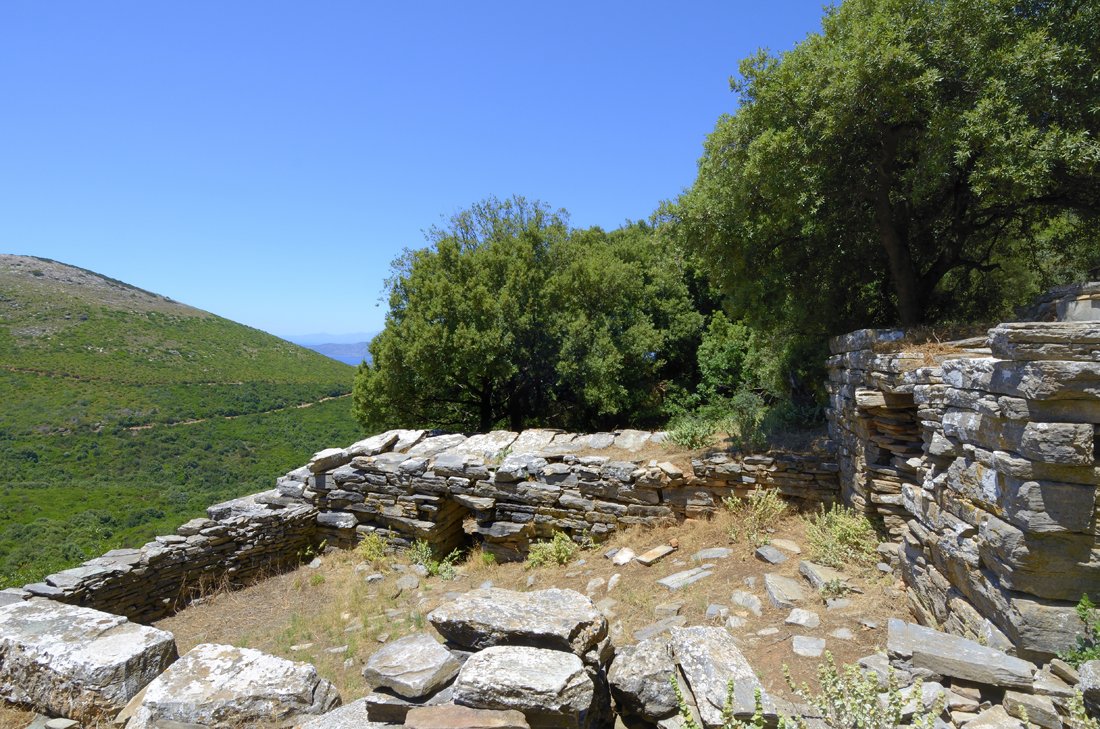 In het Óchi-gebergte in het directe achterland van Kárystos maar ook in de regio rondom Stíra, liggen een aantal eigenaardige ruïnes. Door de bevolking is hieraan de naam Drakóspita gegeven, oftewel Drakenhuizen.