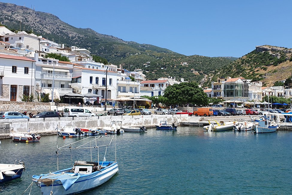 Dit gemoedelijke dorp is gebouwd tegen de hellingen van de bergrug en eindigt in een vredig haventje aan zee. Tijdens de Ottomaanse overheersing was het tijdelijk de hoofdstad van het eiland. De haven wordt omzoomd door tavernes en kafenia met terrassen waar u tussen de lokale bevolking uw koffie drinkt. Het centrum van het stadje bestaat uit diverse hellende (trap)straatjes, langs de kant bezet met fleurige bloempotten en statige, karakteristieke huizen die naadloos in elkaar over lijken te gaan.