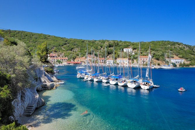 Het charmante vissersdorp Kioni ligt in het noordoosten van Ithaki. Het beschermd stadsgezicht geeft het dorp een karakteristieke uitstraling.