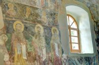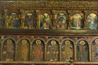 Zodra u deze deur opent en de kerk binnenstapt, ziet u dat de kerk de vorm van een basilica heeft. Een grote rechthoek van dertig bij tien meter, met fresco’s bezaaide muren en een versierd plafond. Een inscriptie in de tempel vertelt dat deze zeldzame muurschilderingen zijn gemaakt door de schilder Antonios van Agrafa in 1680. De kerk is waarschijnlijk al veel eerder gebouwd. Antonios was een bekende schilder in die tijd, en de fresco’s laten zeker zijn talenten zien. Ze illustreren de levens van verschillende heiligen, opgedeeld in vijf zones, en zijn doorspekt met invloeden van de Venetianen en de Meteora-kloosters. Hoe belangrijk deze kerk vroeger was, is terug te zien in de architectuur. Die zorgt er namelijk voor dat de akoestiek in het gebouw zo optimaal mogelijk is. En dit moet ook wel, want vroeger was de kerk een verzamelplaats voor grote menigtes uit de omgeving. De kerk werd zwaar beschadigd tijdens de aardbevingen in 1953, maar is gelukkig gerepareerd dankzij financiering door de van Ithaki afkomstige scheepseigenaar Panos Gratsos.