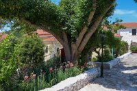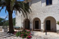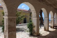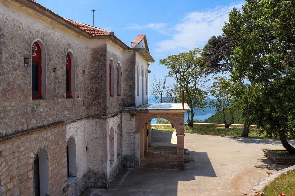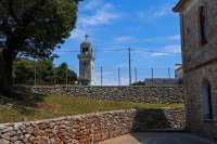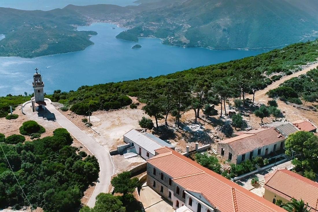 Terwijl u via de nodige haarspeldbochten langzaam omhoog klimt laat de zee zich steeds in volle glorie zien. Het oneindige blauw is een lust voor het oog en eenmaal bij het klooster aangekomen wordt u beloond met een adembenemend uitzicht over de zuidkant van Ithaki. Vanaf de klokkentoren ziet u in de verte de rode daken van de huizen van Vathi tegen het blauwgroen van de gelijknamige baai afsteken en ook het noordelijke puntje van Kefalonia is duidelijk te onderscheiden.