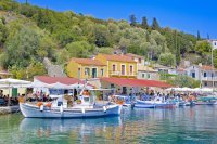 In de charmante haven liggen veel vissersboten en ook zeilers gooien hier graag hun anker uit. Vanaf de gezellige terrassen op de kade heeft u uitzicht op de drie oude windmolens en ziet u vissers die hard aan het werk zijn om te zorgen dat de tavernes dagelijks van verse vis worden voorzien. Naast tavernes, cafés en een kafenion zijn er in Kioni ook de nodige souvenirwinkeltjes te vinden.