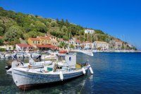 Huize Dina is zeer centraal gelegen ten opzichte van de kade, de haven en het plein van Vathi.