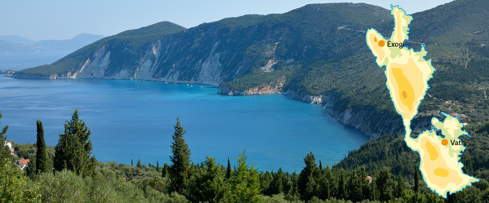 Over een hooggelegen pad langs de berg Merovoulo biedt deze wandeling panoramisch uitzicht over heel Vathi en omgeving. Tevens zie je de omliggende eilanden en het vasteland.