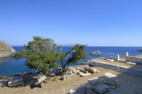 Achter de kade van Korissiá en op een ruim landgoed gelegen. Uitstekende uitvalsbasis voor wandelaars.