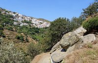 Achter de kade van Korissiá en op een ruim landgoed gelegen. Uitstekende uitvalsbasis voor wandelaars.