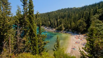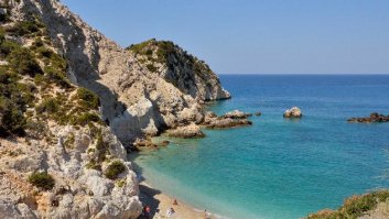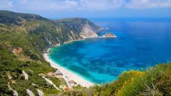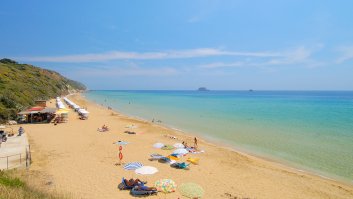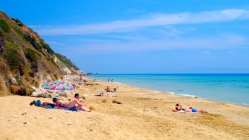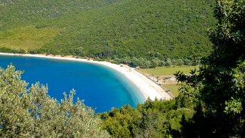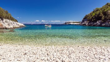 Dit prachtige strand in het noorden van Kefalonia ligt aan de voet van met bomen beklede helling. In de zomermaanden is schaduw hier beperkt, maar een duik in het sprankelende en frisse water biedt dan uitkomst. Als het te warm wordt kan verkoeling ook worden gezocht in de kleine grot die aan de waterkant ligt.