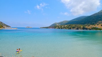 Nog steeds bevinden we ons in de omgeving van Lixouri. Verscholen in het zuiden ligt het paradijselijke strand van Vatsa. U waant zich hier op het strand van Robinson Crusoe! Onbewoond is het daarentegen niet, al doen de verkeersborden met krokodillen, kamelen en kangoeroes anders vermoeden! De taverne zit er sinds jaar en dag en serveert de heerlijkste gerechten. De eigenaren vonden op deze plek onder andere een prachtig bewaard gebleven mozaiek met dolfijnen, welke nu te bewonderen is in het Archeologisch Museum in de hoofdstad Argostoli. Het kleine kapelletje Agios Nikolaos is te bezoeken, net als de plek waar het mozaïek gevonden is en waar u nog diverse overblijfselen terug kunt vinden van een tempel. Ook hier rood zand als strand aan de rustige aanspoelende zee. Op de vingers gekeken door een groepje nieuwsgierige ganzen dat hier altijd te vinden is.