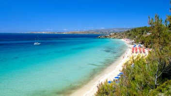 Goudkleurig zandstrand dat langzaam afloopt in zee. Let tijdens een bezoek aan het strand van Avithos ook eens op het kleine rotseiland Dias dat vlak voor de kust ligt. Op dit eilandje was vroeger een tempel die gewijd was aan de god Zeus. Vandaag de dag staat op deze plek een kerkje.