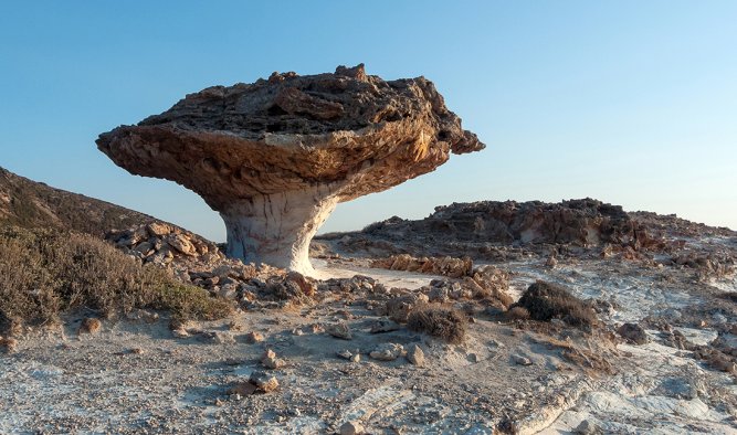 Op het hoogste deel van Kimolos ligt een natuurlijk fenomeen: Skiadi. Het is een steen in de vorm van een paddenstoel die hier de lucht in steekt.