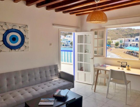 Tussen de haven van Psathi en Chorio ligt Toffee. Er zijn twee appartementen en twee studio's waarvan de studio's de naam dragen van de Nereïden.