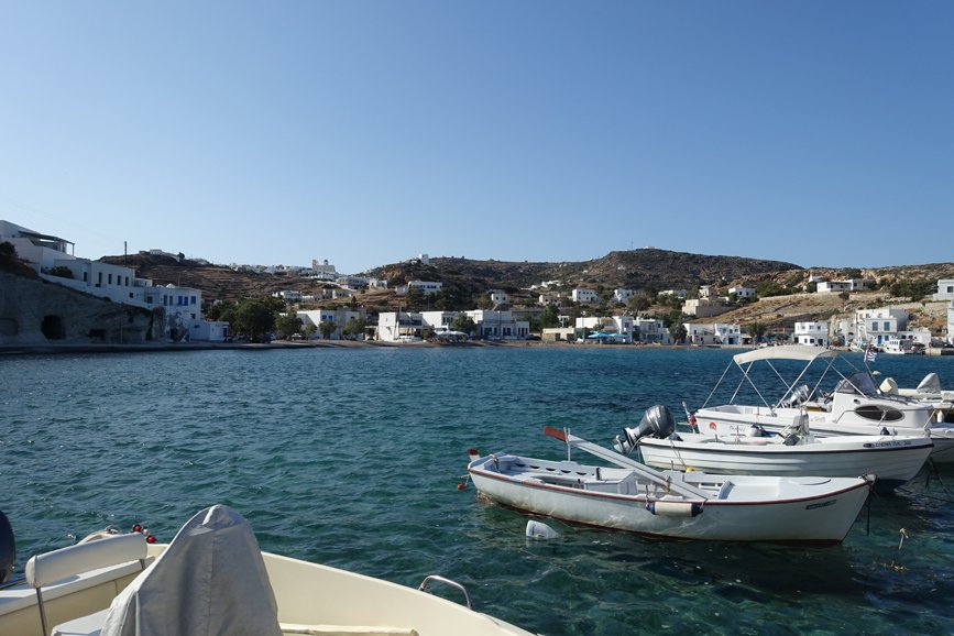 Als u met de boot aankomst op Kimolos dan gaat u van de boot af in het havenplaatsje Psathi. Als u aan komt varen stralen de witte huisjes tegen de helling u al tegemoet.