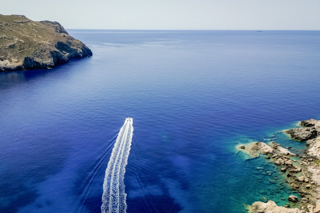 In het geval van een westenwind, vaart u naar de oostkust waar u bij Diakofti het scheepswrak Nordland ziet. Vervolgens vaart u door naar de Caves of Seals, Mantala, Vlychada beach, Kaladi, Pyrgi en Kakoplaka.