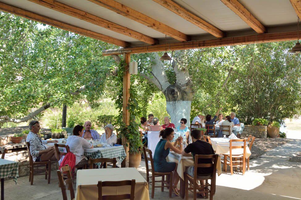 Ook taverne Filio, gelegen in het dorp Kalamos, serveert ‘moeders eten’. Eigenaresse Katerina legt uit: “Mijn moeder leerde mij koken toen ik twaalf was. We maken alles van onze eigen producten.” De taverne is een uitbreiding van de familieboerderij, waardoor het merendeel van de gerechten wordt gemaakt van alles wat de familie zelf produceert. Wat dacht u van de lokale tiganopsomo (brood uit de pan) met tomatensaus en fetakaas, of xynochondros, een lokale pasta gemaakt van tarwegrutten en gefermenteerde geitenmelk, gekookt met aubergines? Combineer een maaltijd bij Filio met een wandeling over de stranden in de buurt van Kalamos.