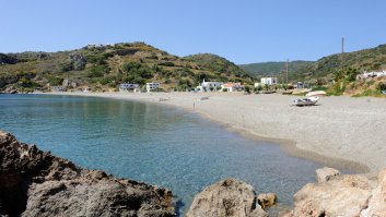 Dit strand ligt in het noorden in de buurt van het dorp Agia Pelagia. Het is een middelgroot strand dat redelijk bezocht wordt. Het strand is te bereiken via een geasfalteerde weg en het strand bestaat uit een mix van rood zand en kiezels.
