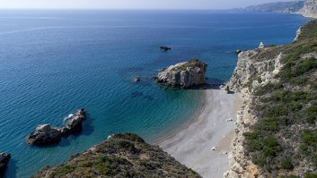 Een van de vele wat meer afgelegen en moeilijker bereikbare stranden. Dit strand is te bereiken via een onverharde weg en het is een middelgroot strand met kiezels. Aan de zijden beschut door de hoge rotsen is ook dit strand voor u alleen.