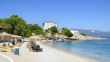 Een van de vele kleine stranden met fijne kiezels dat via een geasfalteerde weg te bereiken is en zonder faciliteiten is. Daardoor een oase van ontspanning en alleen het ruisen van de zee is uw gezelschap.