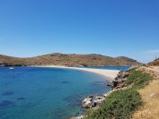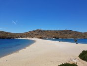 Het strand van Kolona is feitelijk een smalle strook land dat het vasteland van Kythnos verbindt met het eilandje Agios Loukas. Dankzij het fijne, goudkleurige zand en het helderblauwe water wat aan twee kanten aan komt rollen, heeft Kolona een grote aantrekkingskracht. Enkele bomen zorgen voor natuurlijk schaduw.