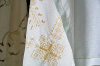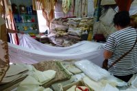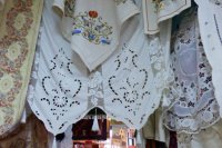 Als men een wandeling door de nauwe straatjes van het dorp maakt en bij een openstaande deur of raam naar binnen kijkt, zult u niet zelden een vrouw bezig zien met het weven van een kleed. De patronen die hiervoor gebruikt worden zijn uniek voor het eiland. Kenners herkennen hieraan ook direct dat het van Lefkas afkomstig is. In een van de vele winkels in het centrum hangen diverse voorbeelden van zowel het weefwerk als van de borduursels zoals tafelkleden.