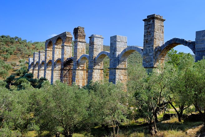 Komend vanuit het zuiden laat het dorp zich zien als een typisch Grieks dorp, compleet met tavernes en een dorpsplein. De kleurige huisjes staan parmantig aan de weg en laten de bezoekers passeren. Na het dorp doorkruist te zijn, komt men bij het pad dat naar het enorme aquaduct leidt. Het pad is redelijk smal dus een korte wandeltocht is aan te raden. De overgebleven kolommen en bogen van dit imposante bouwwerk, feitelijk in ‘the middle of nowhere’, getuigen van het leven op het eiland Lesbos gedurende de Romeinse tijd.