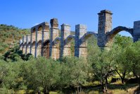 De boogmuur is 170 meter lang, 26 meter hoog en heeft maar liefst 17 bogen. De periode dat het aquaduct gebouwd is, wordt geschat op het einde van de tweede of aan het begin van de derde eeuw na Christus. Het aquaduct is een onderdeel van een 27 kilometer lang watertransport en zorgde er destijds voor dat meer dan 127.000 kubieke meter water per dag, afkomstig van Agiasos op de berg Olympus op Lesbos, naar de burcht in de stad Mytilíni vervoerd werd. Van 2004 tot 2007 heeft men het nog staande deel opgeknapt en voor de komende jaren voor verval behoed.