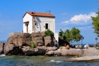 In de kleine vissershaven wordt het oog direct getrokken door de Panagia Gorgona, het op een rots gelegen witte kerkje. ‘Gorgona’ betekent zeemeermin in het Grieks en het kerkje dankt zijn naam aan een wel heel bijzondere muurschildering die hier werd gevonden. Een onbekend gebleven kunstschilder beeldde hierbij de Heilige Maagd Maria gedeeltelijk af als zeemeermin, met in de ene hand een vissersboot en in de andere hand de drietand van Poseidon. Helaas is deze schildering niet meer te zien in het kerkje, maar vanwege de schilderachtige ligging is het nog altijd een geliefde locatie voor onder andere doopfeesten en bruiloften.
