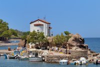 Op korte afstand van Molivos en Petra ligt Skala Sykaminia. Een gemoedelijke vissersplaats, geliefd om het kleurrijke haventje met de witte kerk en de ongedwongen sfeer. Het is dan ook vast niet toevallig dat de bekende Griekse schrijver Stratis Myrivilis juist hier inspiratie vond voor zijn in het Nederlands vertaalde boek ‘de Madonna met de vissenstaart’.