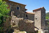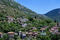 Idyllisch tussen het groen gelegen, vormt dit dorp op een hoogte van 550 meter een kleurrijk plaatje. De rode daken van de huizen steken prachtig af tegen de groene omgeving en nauwe geplaveide straten leiden naar het centrale dorpsplein waar het plaatselijke kafenion de bezoeker opwacht voor een versnapering in de weldadige schaduw van grote moerbeibomen. Ook in dit dorp zijn een groot aantal Byzantijnse kerkjes met uitmuntende muurschilderingen te bewonderen, maar misschien wel het meest opvallend is de marmeren klokkentoren van de Metamorphosis kerk die hoog boven het dorp uittorent. Eveneens een bezoek waard is het Panagia Giatrissa klooster. Dit ligt een paar kilometer boven het dorp en huisvestte ooit 300 monniken. Tegenwoordig is het een belangrijk bedevaartsoord dat ieder jaar op 8 september grote groepen gelovigen trekt.