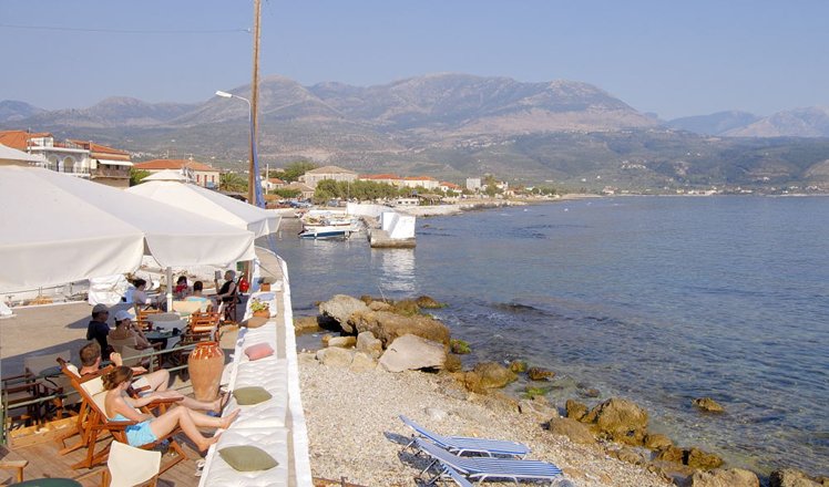 Ten zuiden van Stóupa ligt Ágios Nikólaos. Hier concentreert het leven zich rond de haven. De vissersboten dobberen in het water, de vissers brengen hun vangst aan land en boeten hun netten. Daar is een handvol cafés en tavernes met terrasjes waarop de fameuze wiebelstoeltjes uitnodigen om ongestoord te mijmeren terwijl de deinende zee voor u ligt.